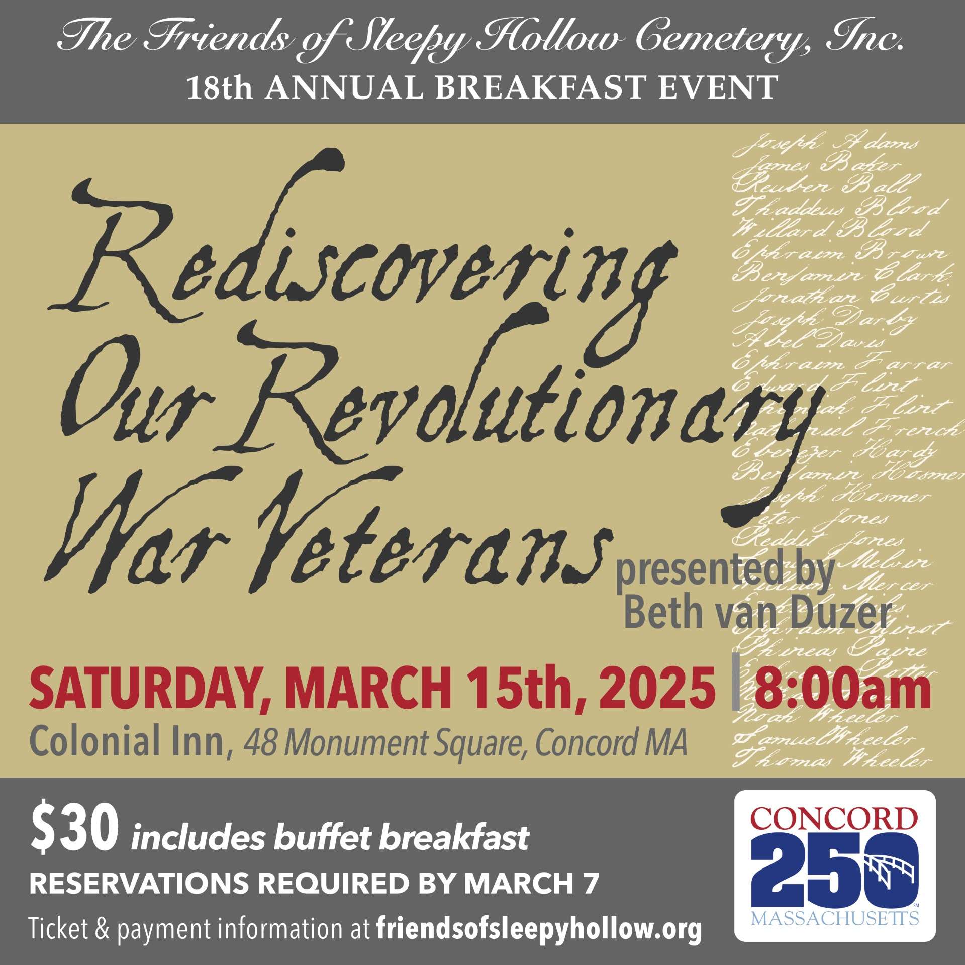 The Friends of Sleepy Hollow Cemetery 18th Annual Breakfast Event